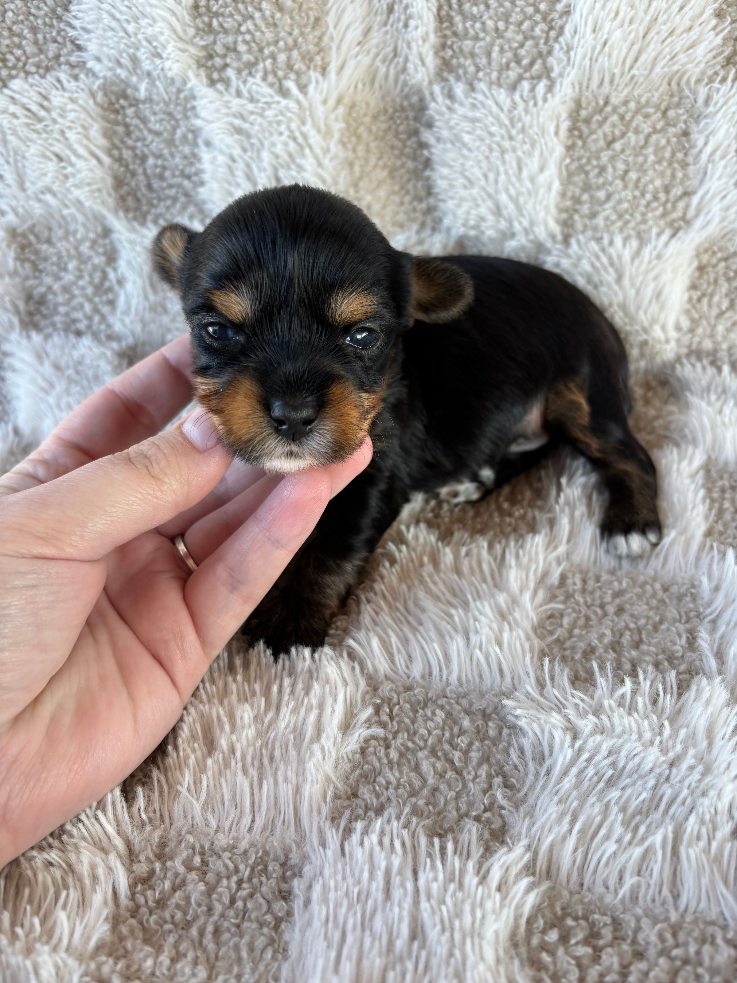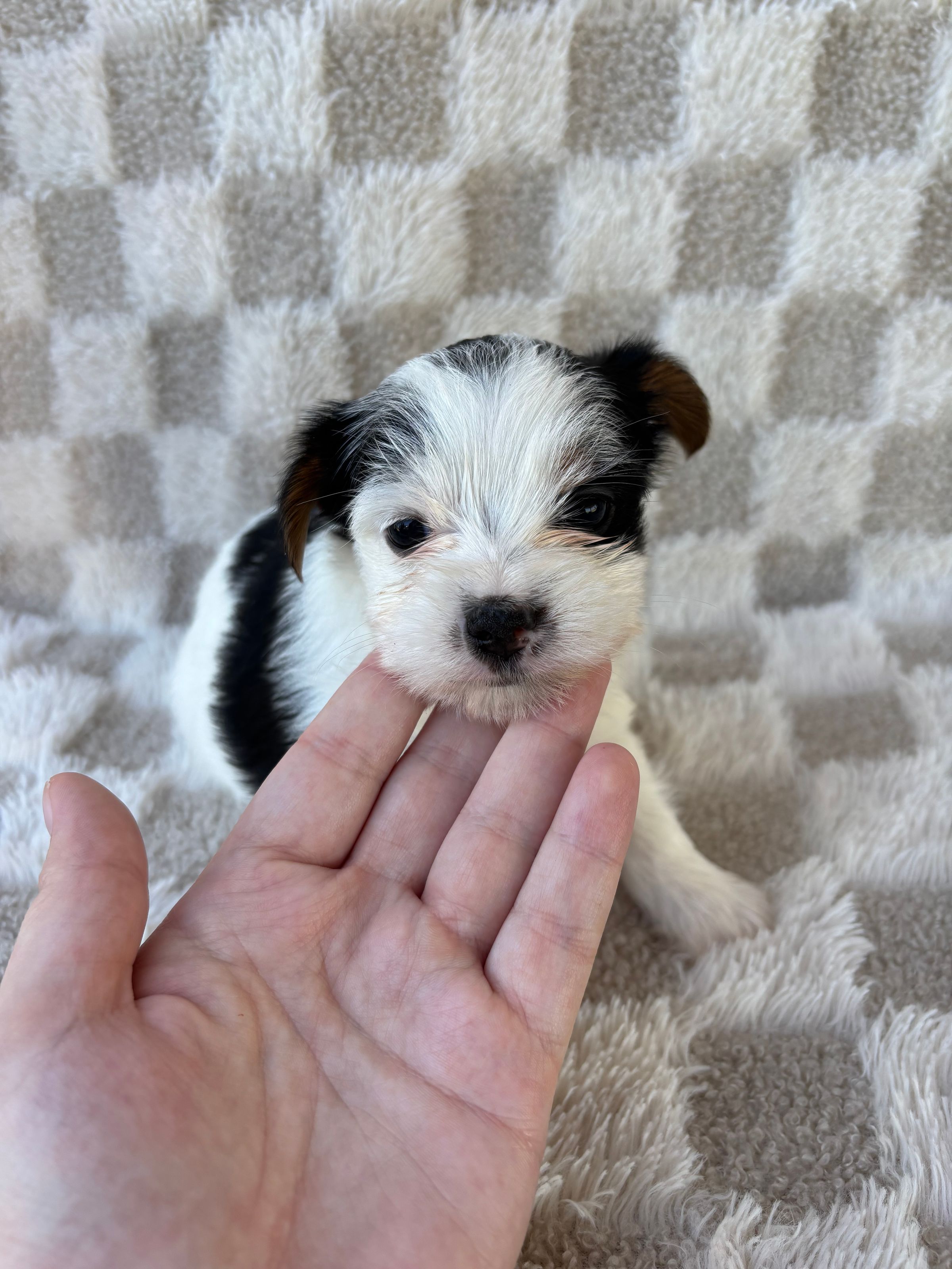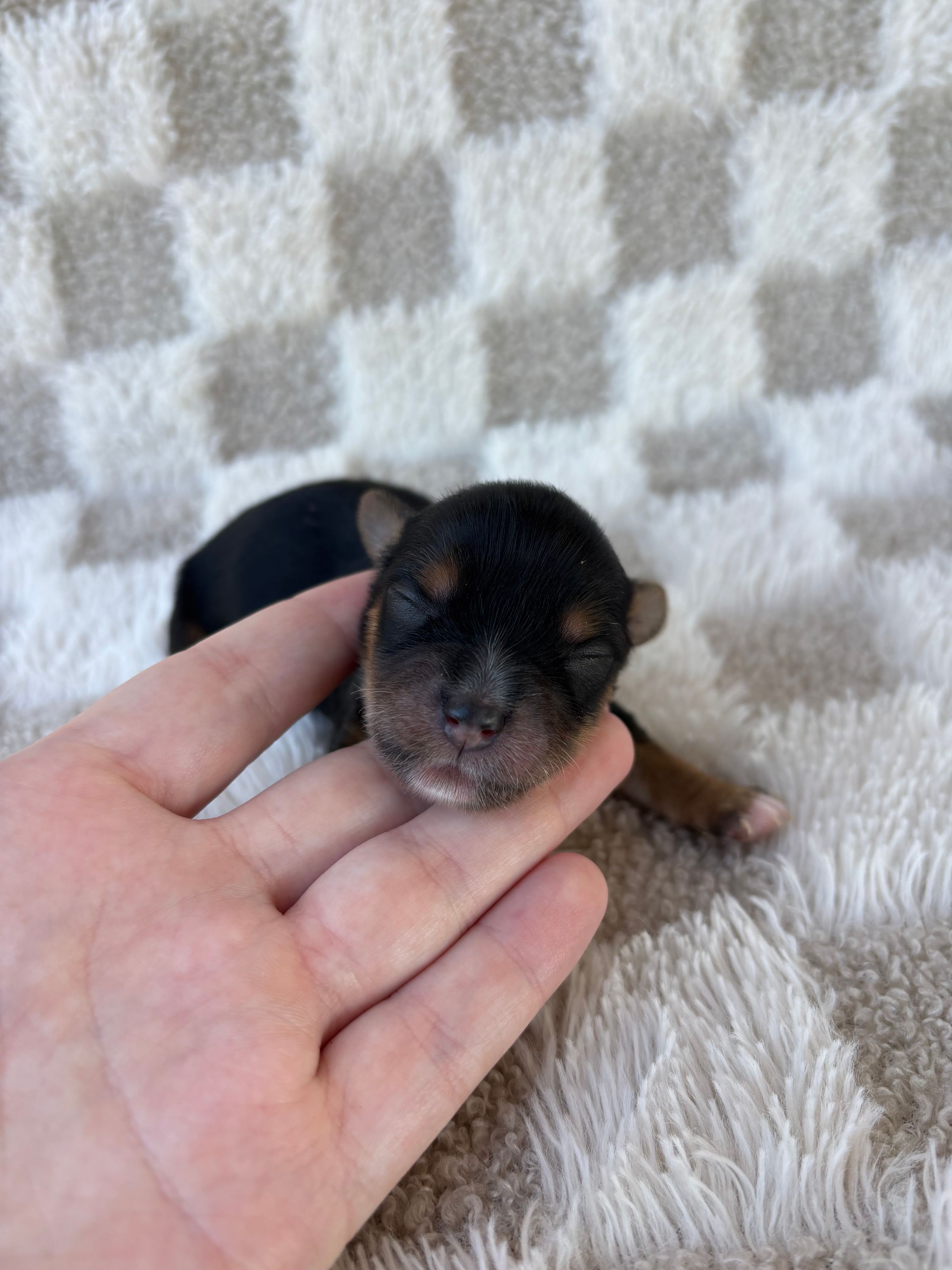 Meet Toby! He is a small little boy charting 5lbs full grown. His tail is docked and dew claws removed. He carries parti, chocolate and merle. He is APRI registered. He will come home with all of his vet records, registration paperwork and a going home bag.